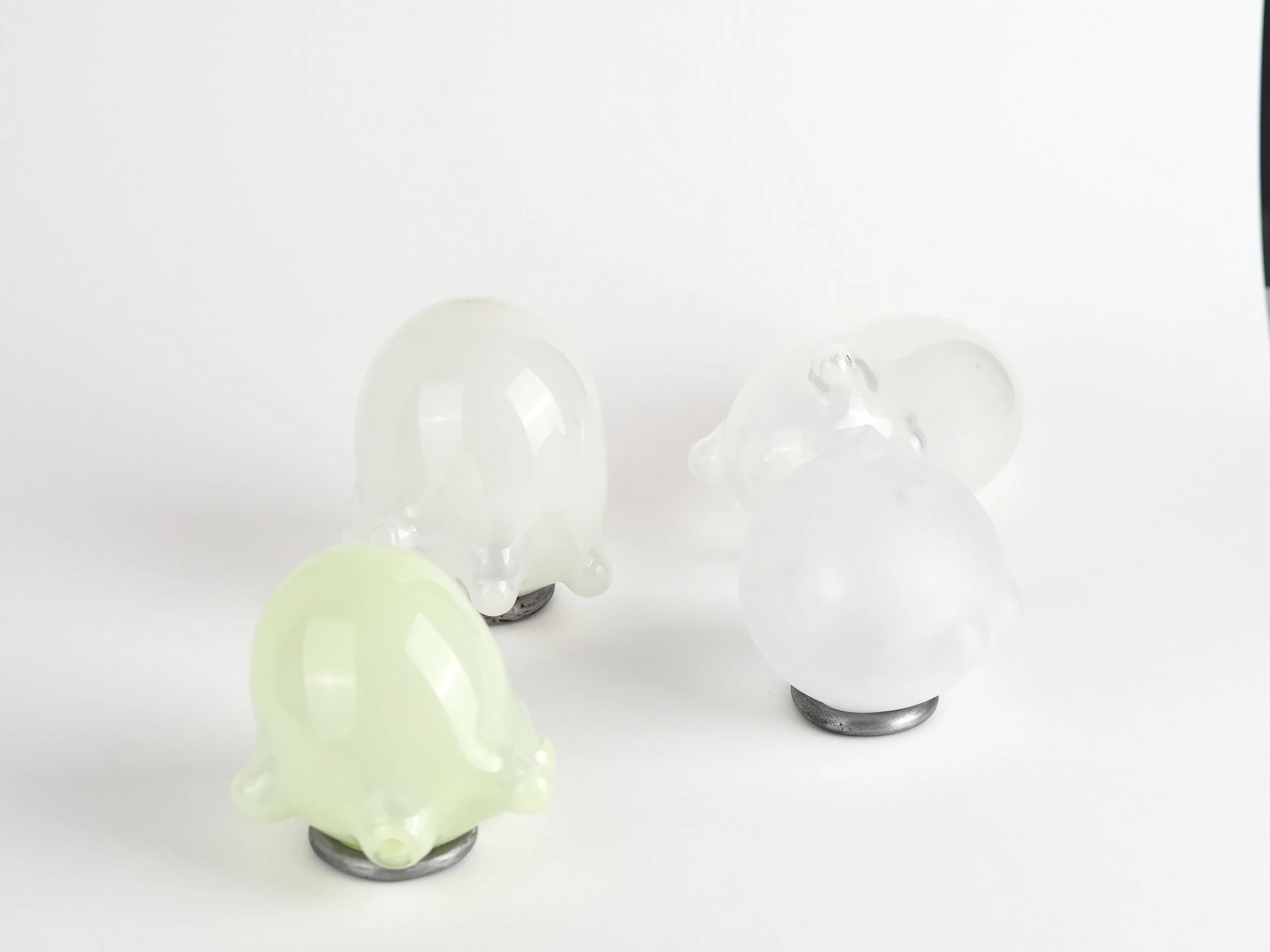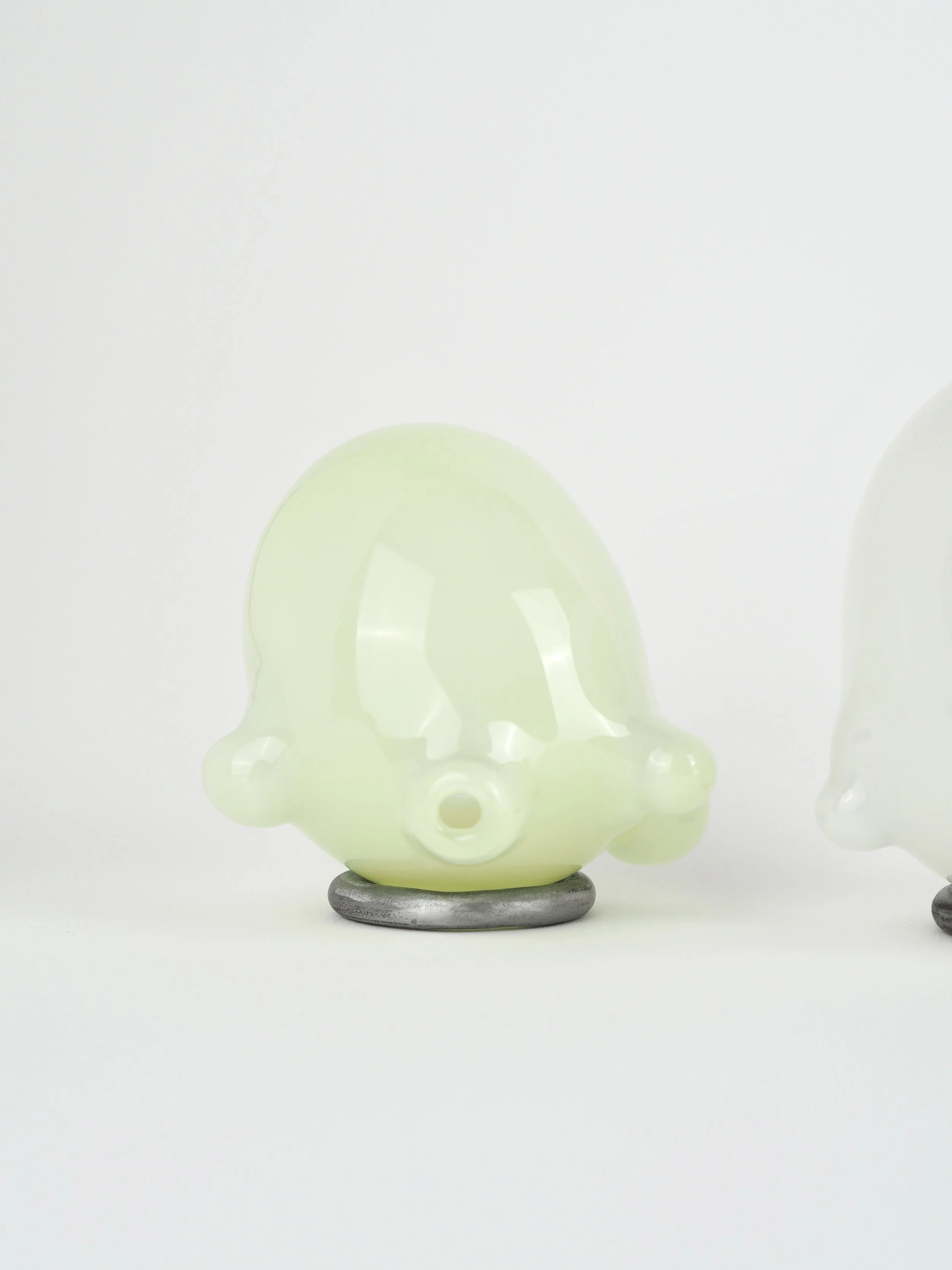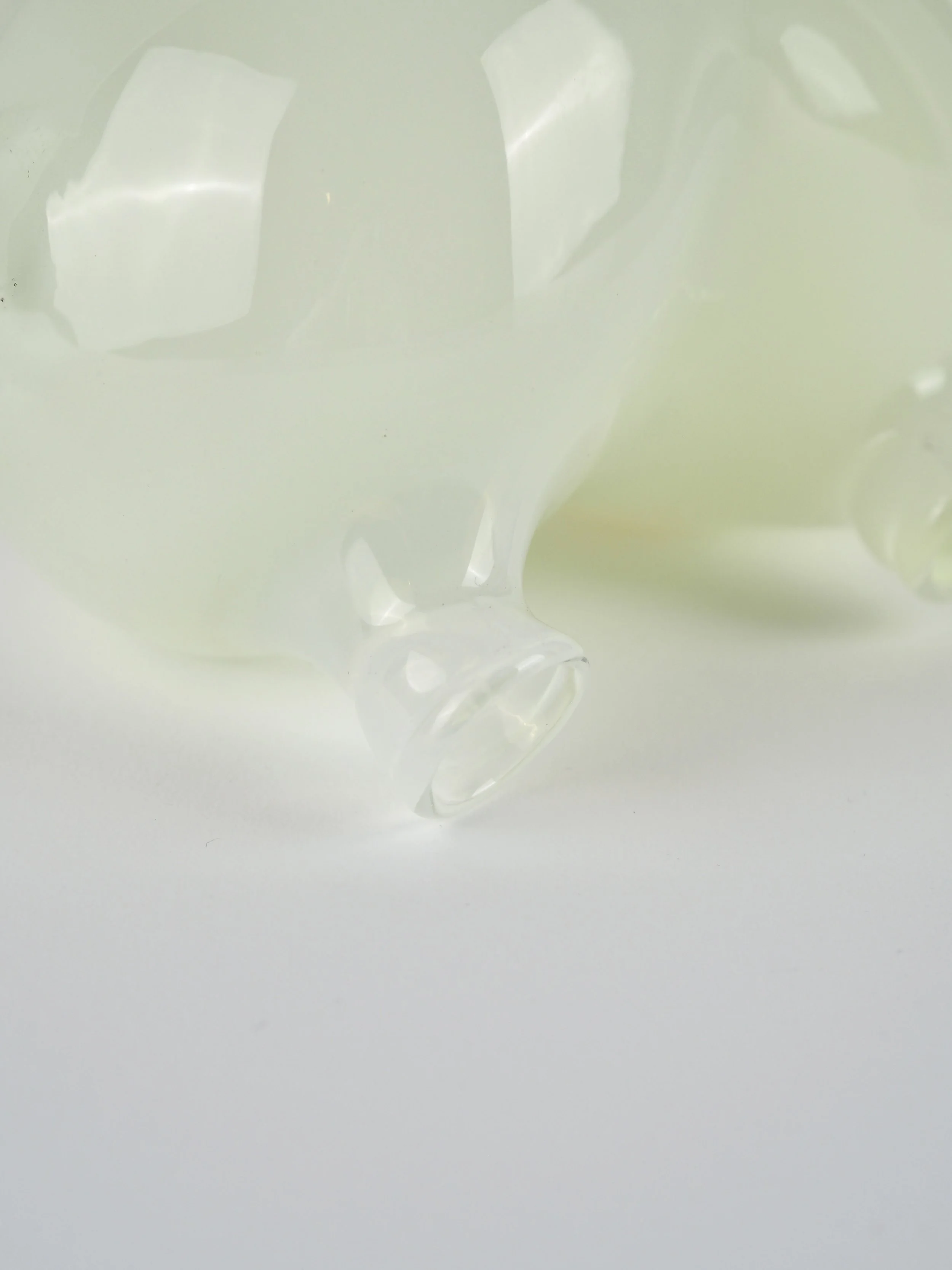 Hun har blåst glatte belger i blekt sykehus-farget, opakt glass - former som vrenger innsiden vår ut. Det er som om objektene har blitt kuttet varsomt ut av kroppene og lagt fram for oss.